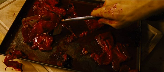 Good stuff; candy cane-to-jugular violence, pen-to-eye violence, sugar cookies made of skin, multiple stabbings, eye ripping, eye eating... you know, this movie really does have a ton of eye violence.