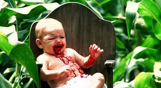 | Poor little bloody baby in the corn... why are you out in the corn? You're not a scarecrow, you're a baby! |