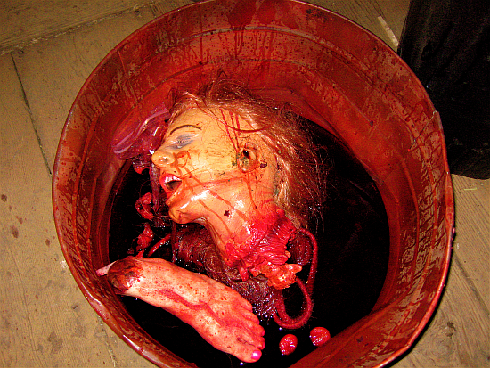 Not a ton, but what we got was pretty crazy; hooks in ankles, foot and leg stabbing, a particularly nasty human flaying/bleeding scene, gun violence, axe violence, knife violence... this one delivers the goods.