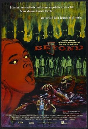 #51- The Beyond (1981)...and we close out the day with another classic Zombie movie, this time of the Italian variety. The Beyond is one of the greatest movies in the repertoire of master film maker Lucio Fulci. His stylized visuals along side of his penchant for over the top gore, makes for interesting and squeamish viewing. We've said it before on this site; most old school Italian Horror films make little sense, will confuse or confound you, and might even feel comical in their efforts at times, but... but, but, but... more often than not, they're bold, daring, extremely violent and nasty, and have a style that just compels you to watch them. The Beyond, while being silly in parts (stop shooting them in the stomach Giuseppe, the first 100 shots that did nothing should be a clue!), had some brilliant moments; from Jill getting her head blown off, to the blind eyes of the psychic, Fulci just knew how to kick you in the nuts visually, and leave you wanting more. I dare you not to say "WTF?!?" at the ending though.