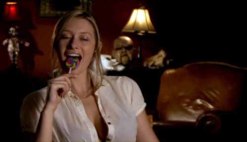 KE:HH is the story of a gang of hot sluts who are setting up a Haunted House in an old mansion. They sit around licking lollipops, grinding on one another, getting high and drunk, taking their clothes off, and just being slutty in general. When they come across an old VHS tape containing an old movie called The Killer Eye (which is a real and awful movie from 1999, btw), weird things begin to happen.