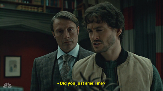 Speaking of big reveals, the very last scene of Season One, in which Will looks at Hannibal and says "Hello, Dr. Lecter" as if meeting him for the fist time, and truly seeing him for what he is, and Hannibal's wry smile back to him, was simply perfect. It was devilishly good, and I'm not gonna lie, it made us kinda giddy. We may have even squealed a bit, and thrown our fist into the air an yelled "Yeah!" You'll never be able to prove that though, will you?