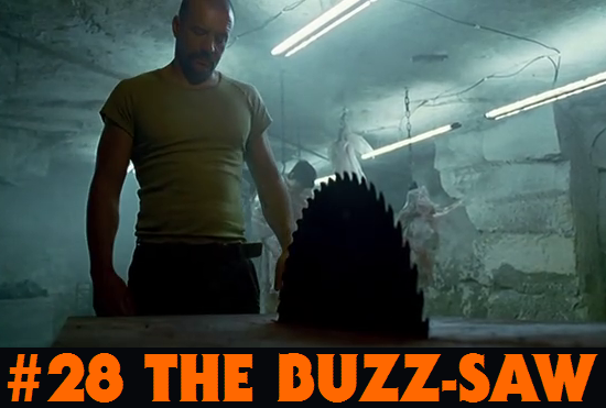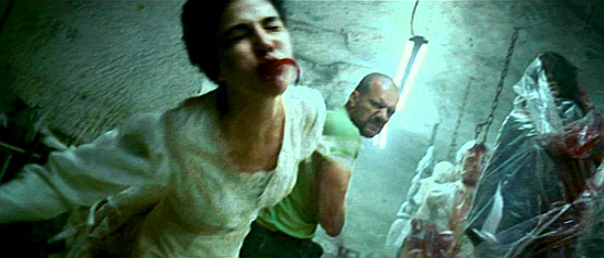 Now here's a scene that may not have creeped us out very much, but it sure did shock us with its clever use of a huge saw, and some sort of high-pressure hose.