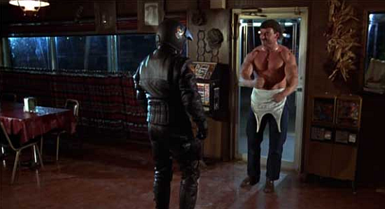 R.O.T.O.R., the terrifying killer cyborg? Well, he looks like the gay biker from